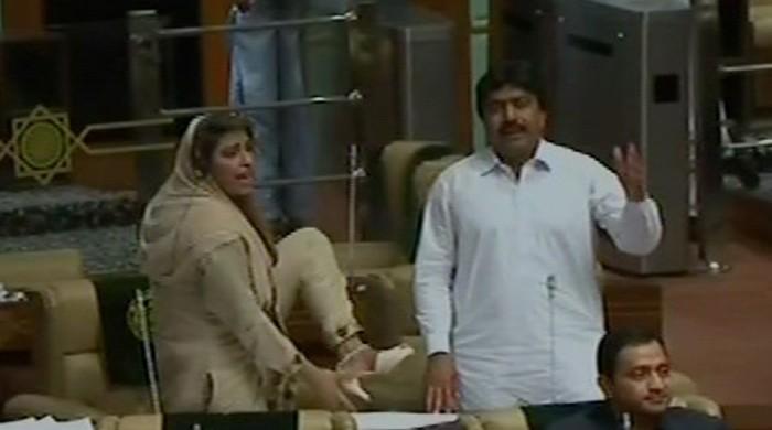 KARACHI: A ruckus was witnessed in Sindh Assembly on Saturday as Pakistan Muslim League- Functional (PML-F) MPA Nusrat Seher Abbasi raised a shoe at deputy speaker Shehla Raza.The PML-F MPA took off her shoe and showed it to the deputy speaker...from GEO TV - Pakistan https://ift.tt/2KzL0oo